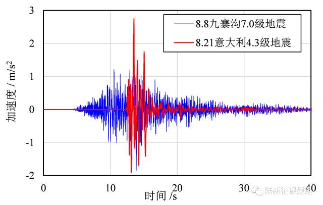 圖3 8.8九寨溝7.0級地震和8.21意大利4.3級地震震中附近地面運(yùn)動(dòng)對比