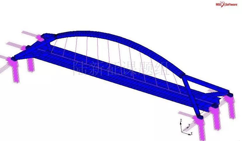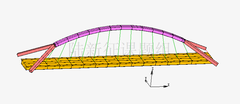 根據(jù)此前橋梁倒塌模擬經(jīng)驗(yàn)(參考資料1:有限元+虛擬現(xiàn)實(shí)=橋梁倒塌的過程反演分析與場景再現(xiàn),參考資料2:6月14日河源東江大橋垮塌事故有限元模擬及分析),采用通用有限元軟件MSC.Marc建立了該橋的三維有限元模型,以模擬此次倒塌事故,如下圖所示。