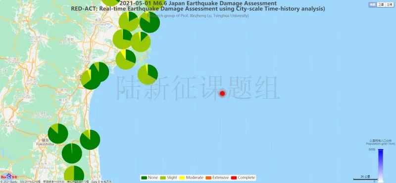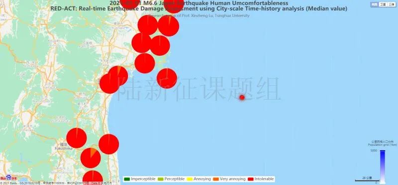 圖4 20210501日本本州東岸近海6.6級地震不同臺站地震記錄破壞力分布圖