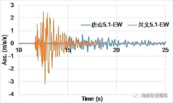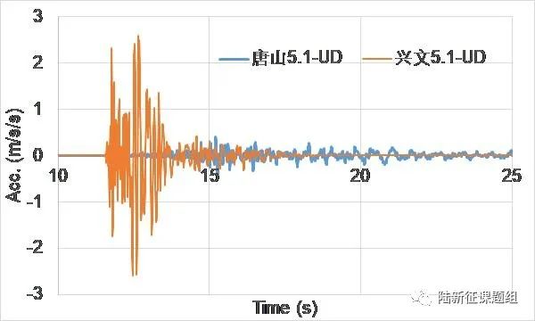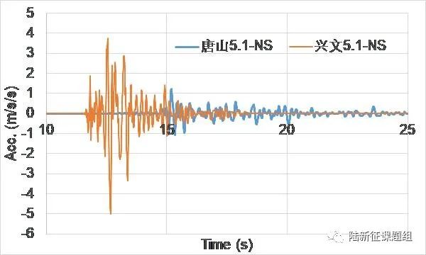 圖1興文5.1級(jí)地震和唐山5.1級(jí)地震記錄到的最強(qiáng)地震動(dòng)對(duì)比