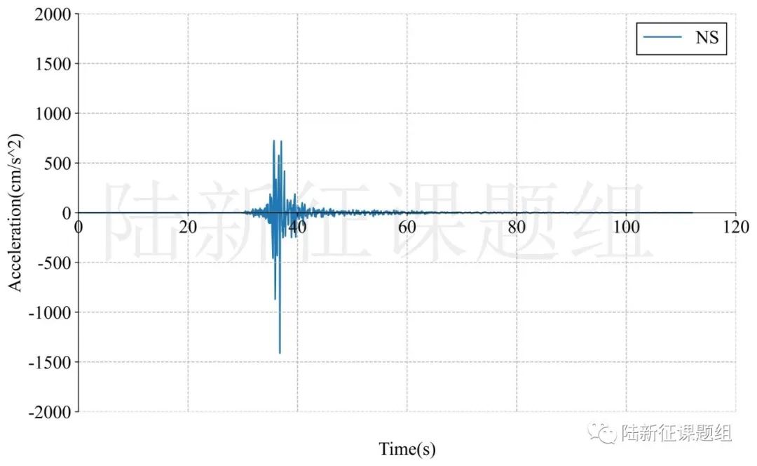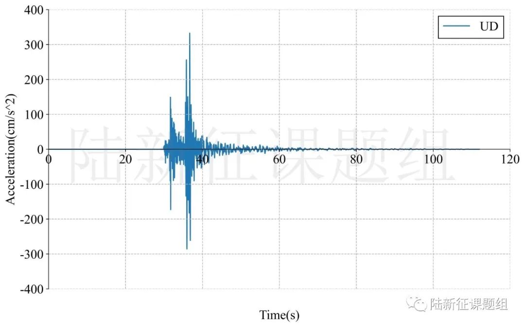 ce89462典型臺(tái)站位置北緯40.504度,西經(jīng)124.101度,記錄到水平向地震動(dòng)峰值加速度為1411cm/s/s,豎直向地震動(dòng)峰值加速度為333cm/s/s。該地震動(dòng)及反應(yīng)譜如圖1、圖2所示。