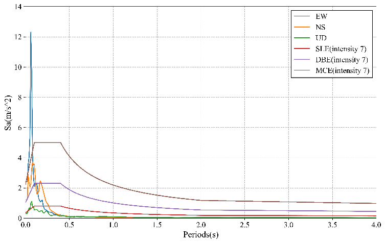 實(shí)測(cè)的儀器烈度雖然比通過震級(jí)來估算地面運(yùn)動(dòng)強(qiáng)度進(jìn)步了不少,但是它畢竟把一個(gè)復(fù)雜的地面運(yùn)動(dòng)過程簡(jiǎn)化成了一個(gè)峰值。因此,在某些情況下峰值可能就不能很好的反映世界的真實(shí)情況。而彈塑性時(shí)程分析把完整的時(shí)程記錄輸入到對(duì)象結(jié)構(gòu)中,可以更好地考慮地震動(dòng)的時(shí)域、頻域各特性。